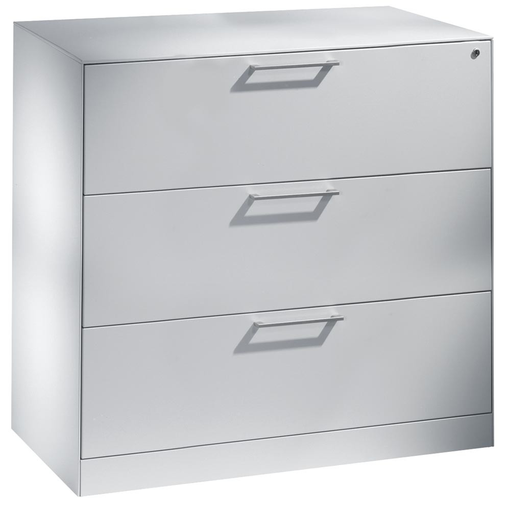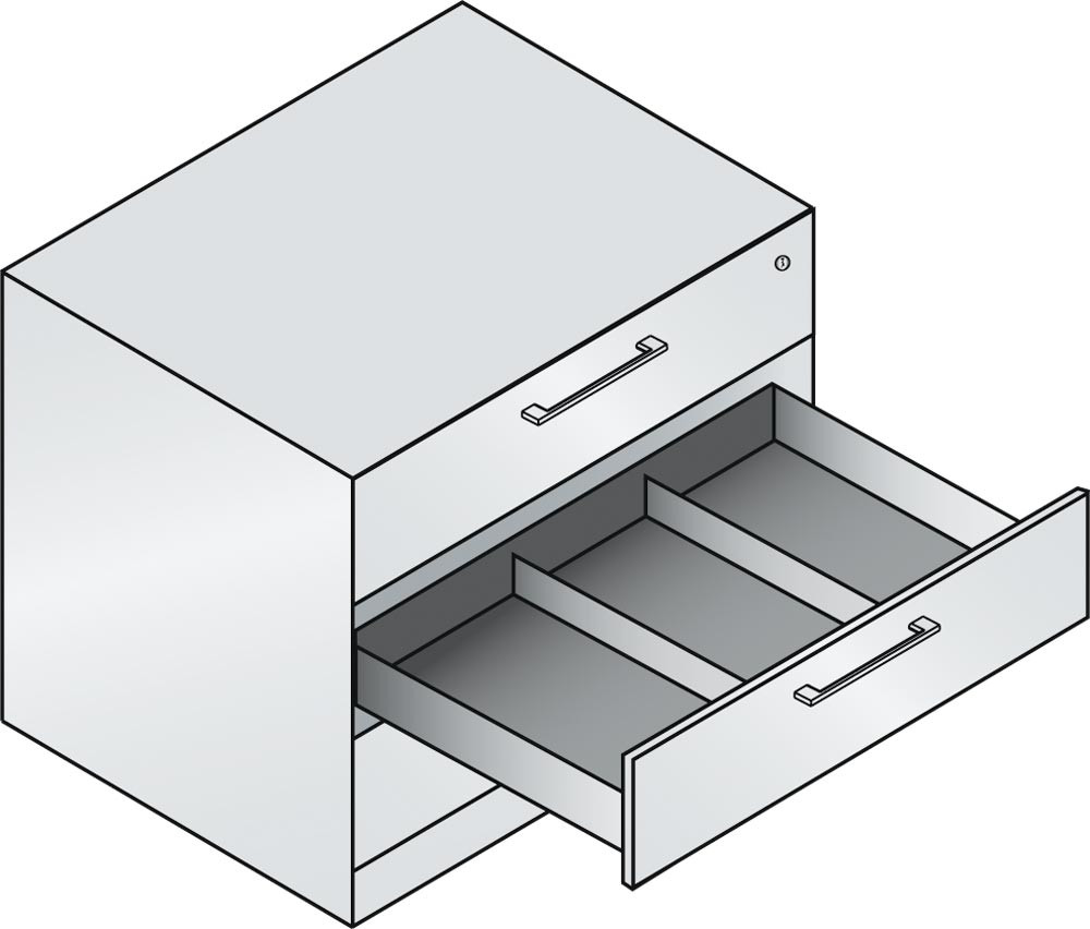 Karteischrank, BxTxH 562x600x698 mm, DIN A5, zweibahnig, 3 Schubladen, Bügelgriff, RAL 7035 lichtgrau E852782