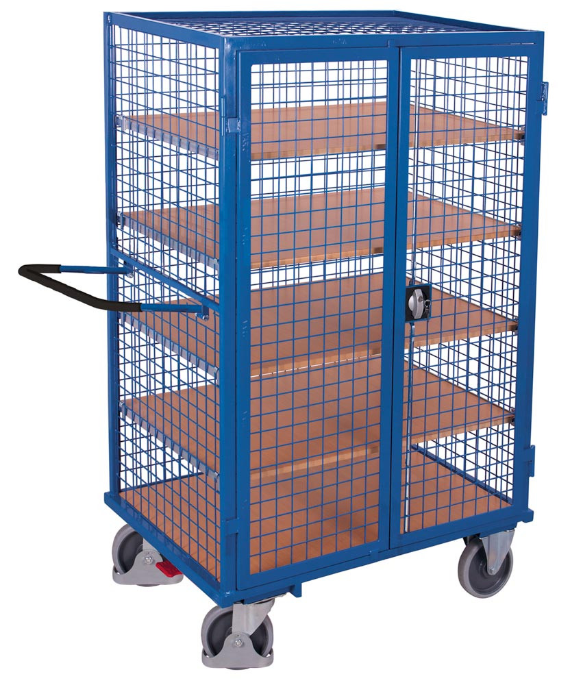 Kastenwagen, Gitterwände, 1 Doppelflügeltür, 5 Ladeflächen LxB 1045x685 mm, Außenmaße LxBxH 1115x730x1810 mm, Traglast 500 kg, RAL 5010 E6422720