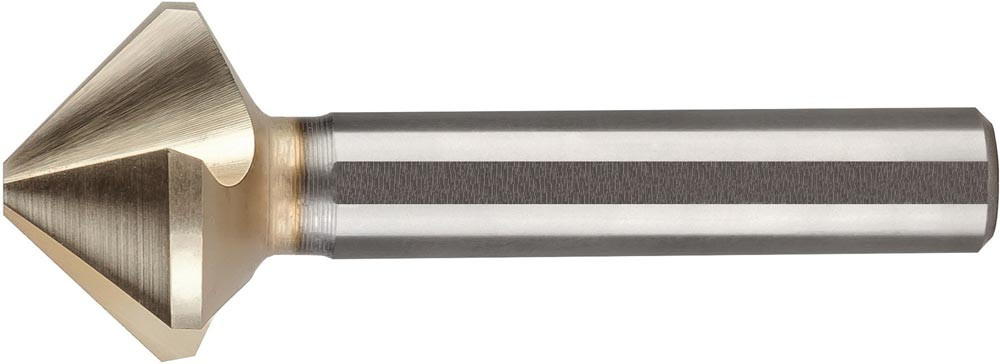 HSS · spezialbeschichtet · DIN 335 C · 3 Schneiden · Senkwinkel 90 ° · rechtsschneidend · Präzisionsausführung · radial hinterschliffen · zur Bearbeitung von Stahl, Guss und Buntmetallen · Vorteile: