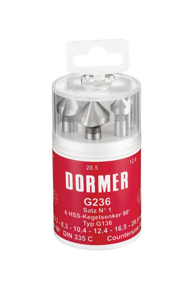 Kegelsenker Set in DIAL-TOOL Box bestehend aus 6 G136 Kegelsenker mit einem 90° Anfaswinkel · Durchmessern 6.30 · 8.30 · 10.40 · 12.40 · 16.50 und 20.50mm · gemäß DIN 335 C Standard zur Herstellung eines konischen Sitzes für ISO-metrische Senkkopfschrauben · HSS mit Standard unbeschichtet zum zerspanen von Allzweckanwendungen