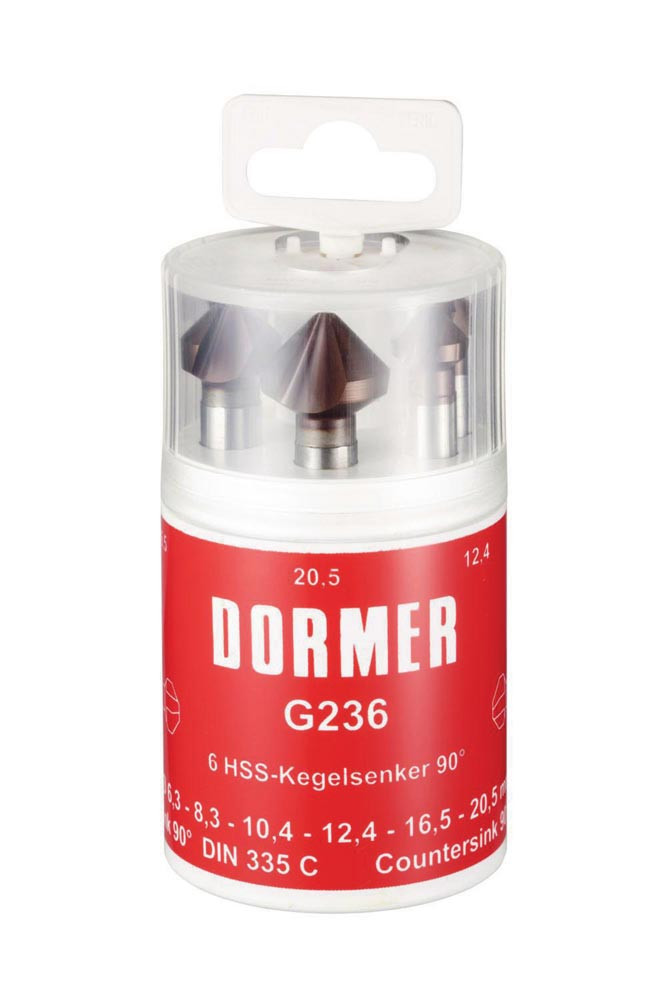Kegelsenker Set in DIAL-TOOL Box bestehend aus 6 G506 Kegelsenker mit einem 90° Anfaswinkel · Durchmessern 6.30 · 8.30 · 10.40 · 12.40 · 16.50 · und 20.50mm · gemäß DIN 335 C Standard zur Herstellung eines konischen Sitzes für ISO-metrische Senkkopfschrauben · HSS mit Standard unbeschichtet zum zerspanen von Allzweckanwendungen