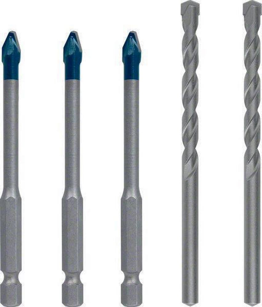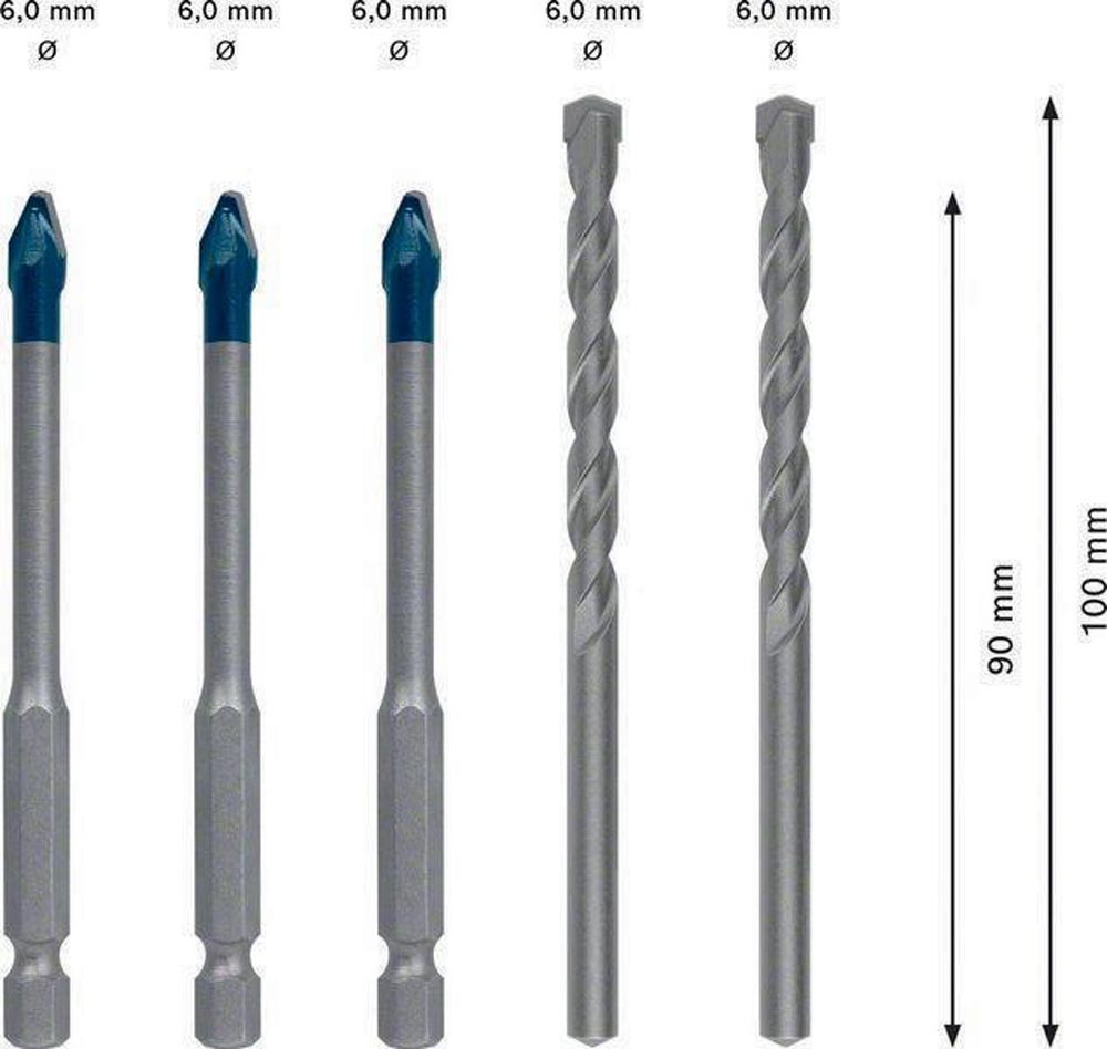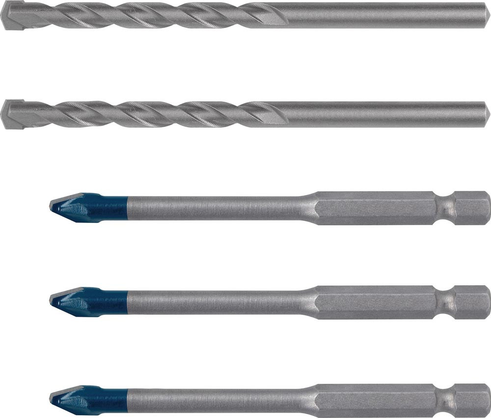 Bohrer-Set · langlebiges Bohren von harten Fliesen · mit Carbide Technology · kombiniert mit einer mehrschneidiger Spitze, die die Arbeitslast auf mehrere asymmetrische Flächen verteilt · ermöglicht ein präzises Anbohren ohne Wegrutschen und Verkratzen · Sechskantschaft für maximale Kraftübertragung in Standard-Bohrfuttern und Futtern von Sechskantschraubendrehern