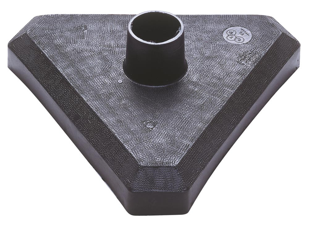 Ketten-Sperrpfosten, Kunststofffuß dreieckig betongefüllt 2,9 kg, Pfosten aus Kunststoff rot-weiß, 870 mm hoch, Durchm. 40 mm