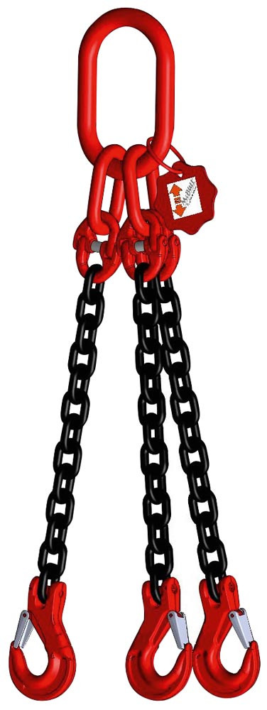 Kettengehänge, 3-strängig, Güteklasse 8, Traglast bei 45 Grad/60 Grad 6700/4750 kg, Kettendurchm. 10 mm, Nutzlänge 1 m