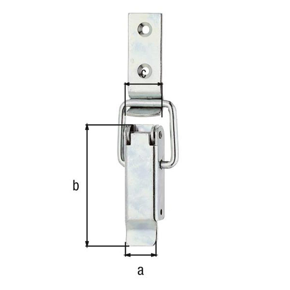 Material: Stahl,Oberfläche: galvanisch verzinkt, dickschichtpassiviert, mit gekröpftem Schließhaken · Aufgrund von Umstellungen der Oberfläche kann dieser Artikel in unterschiedlichen Ausführungen (gelb-verzinkt, sendzimirverzinkt oder verzinkt-dickschicktpassiviert) geliefert werden.