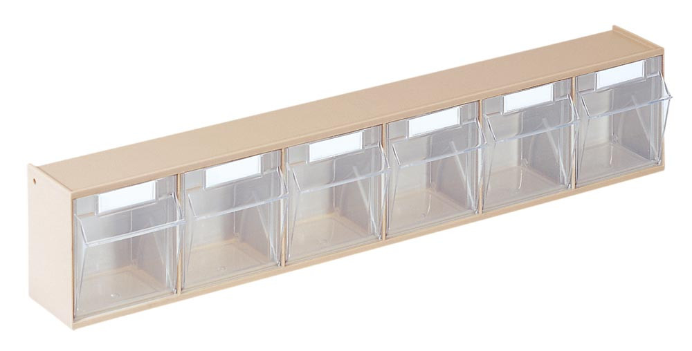 Klarsichtkästen im Gehäuse, 6 Klarsichtkästen Größe 6, BxTxH 600x75x113 mm, Gehäusefarbe beige E860484