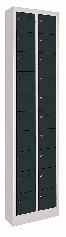 Kleinfachschrank, BxTxH 460x200x1950 mm, 2x10 Fächer, Fachbreite 145 mm, Schloss, Sockel, RAL 7016 anthrazit E1571211