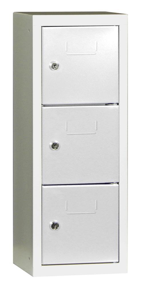 Kleinfachschrank, Modulsystem, Wandbefestigung, BxTxH 225x200x598 mm, 3 Fächer, Türen mit Etikettenrahmen, Schloss, RAL 7035 lichtgrau E6011845
