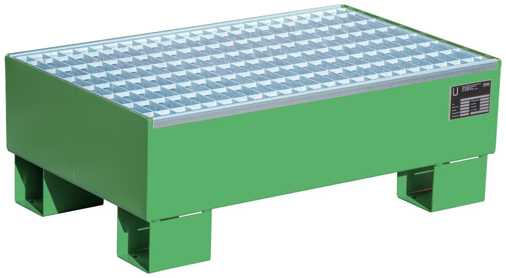 Kleingebinde-Auffangwanne, BxTxH 800x510x295 mm, Auffangvolumen 61 l, mit Gitterrost, 2x60 l-Fass, RAL 6011 E816454