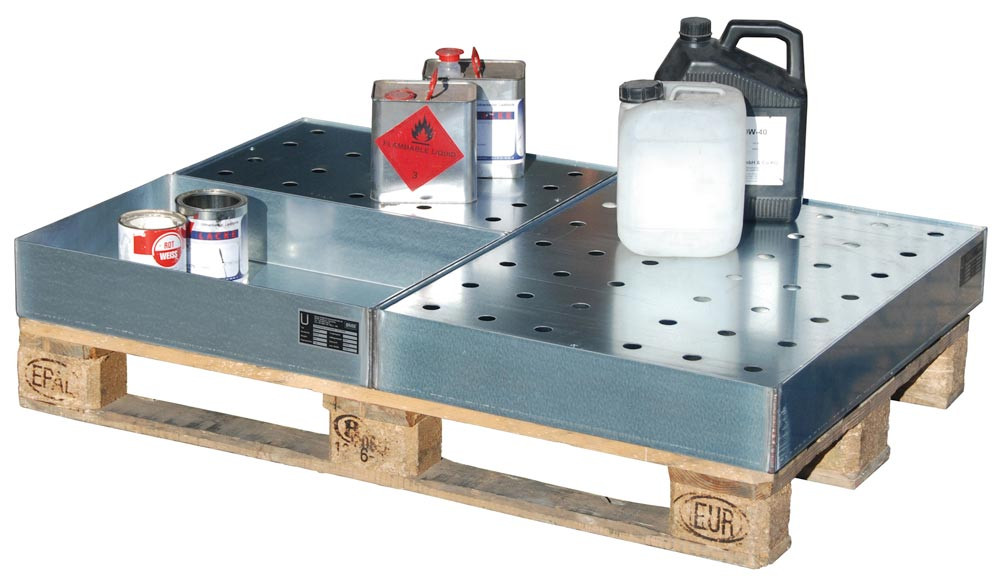 Kleingebindewannen aus verzinktem Stahlblech für Paletten, BxTxH 600x1200x120 mm, Auffangvolumen 60 l, Traglast 200 kg, Gewicht 27 kg E1981827