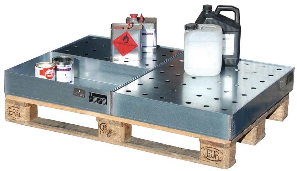 Kleingebindewannen aus verzinktem Stahlblech für Paletten, BxTxH 600x1200x120 mm, Auffangvolumen 60 l, Traglast 200 kg, Gewicht 27 kg E1981827