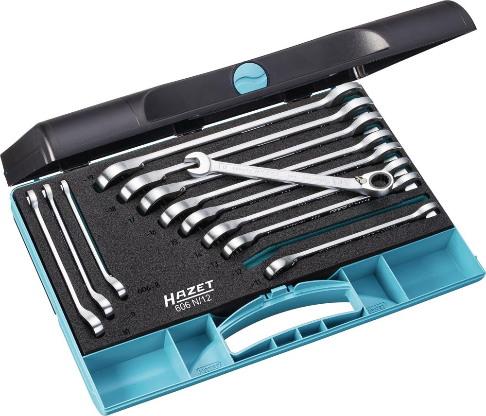 Knarrenringmaulschlüsselsatz 606N/12 12-teilig Schlüsselweiten 8-19 mm abgewinkelt, lang, schlank E6447035