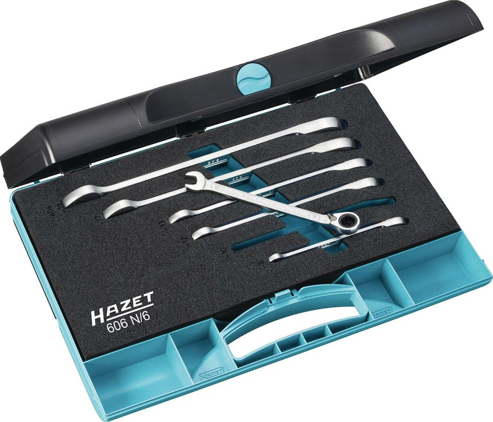 Knarrenringmaulschlüsselsatz 606N/6 6-teilig Schlüsselweiten 8-19 mm abgewinkelt, lang, schlank