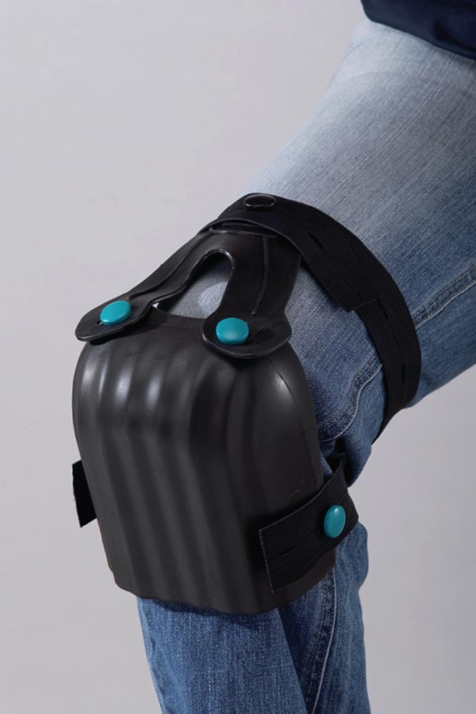 zertifiziert nach DIN EN 14404 · schwarz · Kastenform mit 4 Knöpfen · durchstichfest nach DIN EN 14404 bis 250 N = 25 kg = Leistungsstufe 2 · die breiten Textilstretchbänder, sowie das zusätzliche Ergo-Fix verhindern das Einschneiden der Bänder in die Kniekehle (Bandbefestigung an Ober- und Unterschenkel)