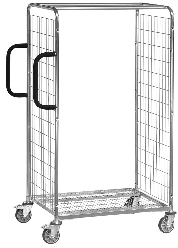 Kommissionierwagen, 2 Gitterwände, ohne Böden, Ladefläche LxB 850x610 mm, Außenmaße LxBxH 1091x690x1625 mm, Traglast 300 kg, verzinkt