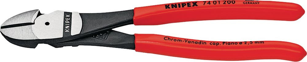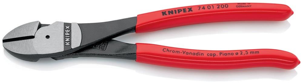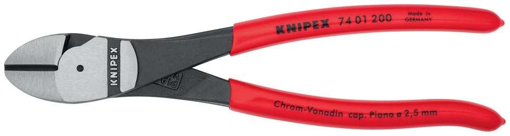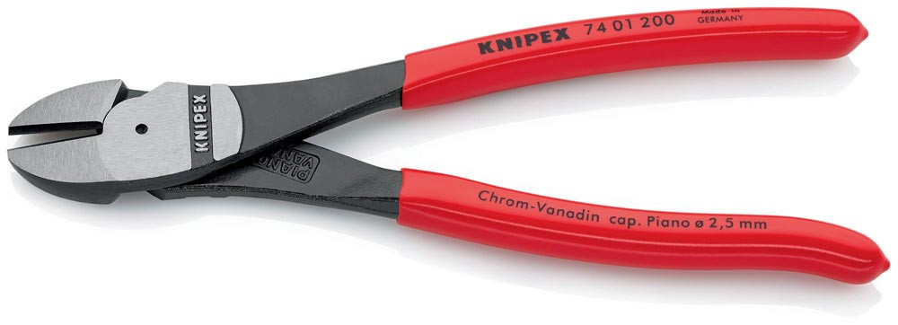 20 % Kraftersparnis gegenüber herkömmlichen Seitenschneider · Schneiden zusätzlich induktiv gehärtet, Schneidenhärte ca. 64 HRC · Chrom-Vanadin-Hochleistungsstahl, geschmiedet, mehrstufig ölgehärtet