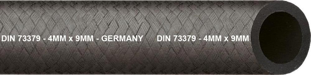 Kraftstoffschlauch · Aufdruck: DIN 73379 - Abmessung - Germany · Bemerkung: Lieferung kann aus 10m und 20m Längen kombiniert bestehen · Beständigkeit Innenseele: B20, E10, E85 · Farbe Innenseele: Schwarz · Fertigungsart Innenseele: Glatt · Fertigungsweise Aussendecke: Textilumflechtung · Max. Temperatur Heißwasser: +90°C