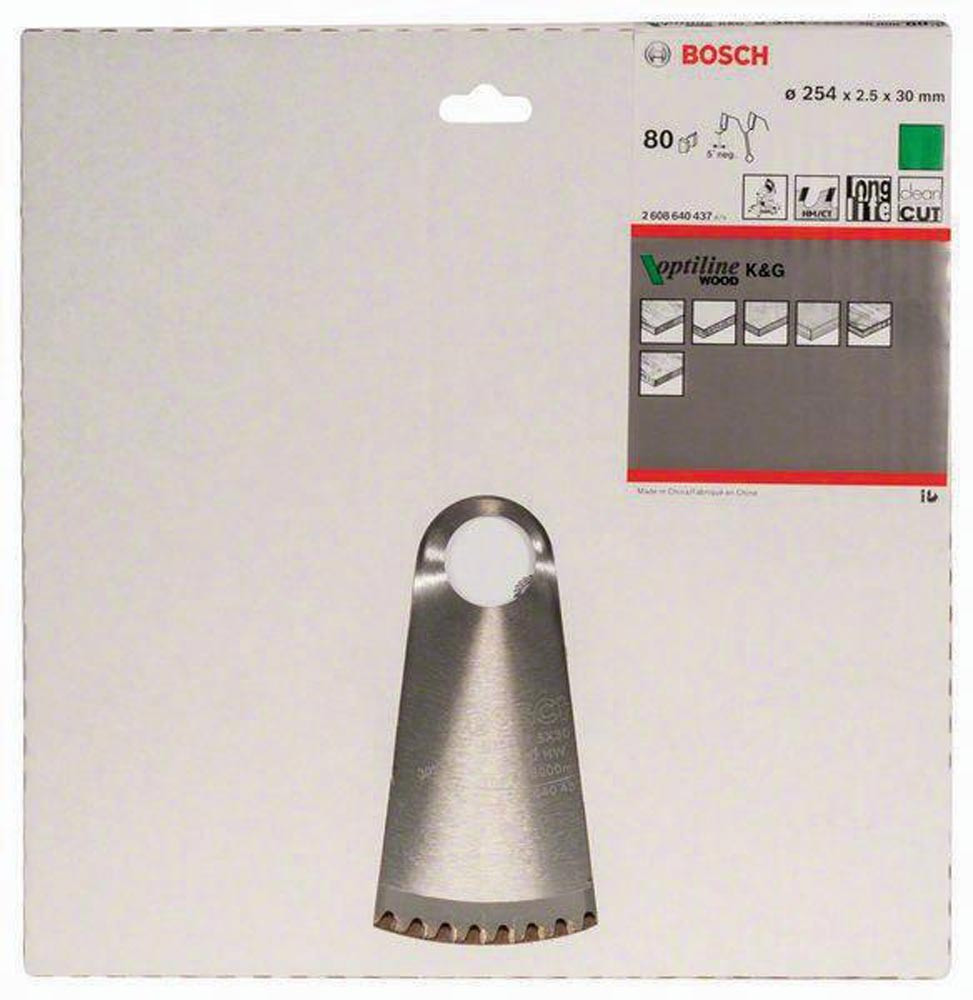 Kreissägeblatt Optiline Wood für Kapp- und Gehrungssägen. Außendurchmesser: 254 mm · Bohrung: 30 mm · Schnittbreite: 2,5 mm · Zähnezahl: 80 · Zahnform: WZ Negativ. Das präzise Blatt für den Qualitätsschnitt in allen Holzarten.