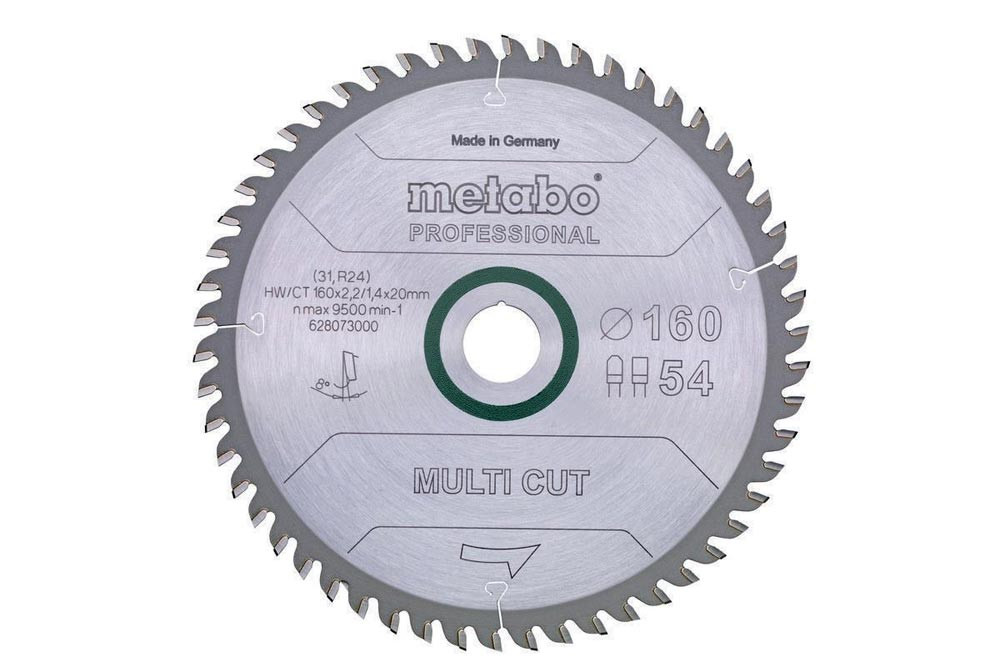 Kreissägeblatt multi cut professional D160xSchnitt-B.2,2xBohrung20mm 54Zähne Flach-Trapezzahn Spanwinkel8Grad