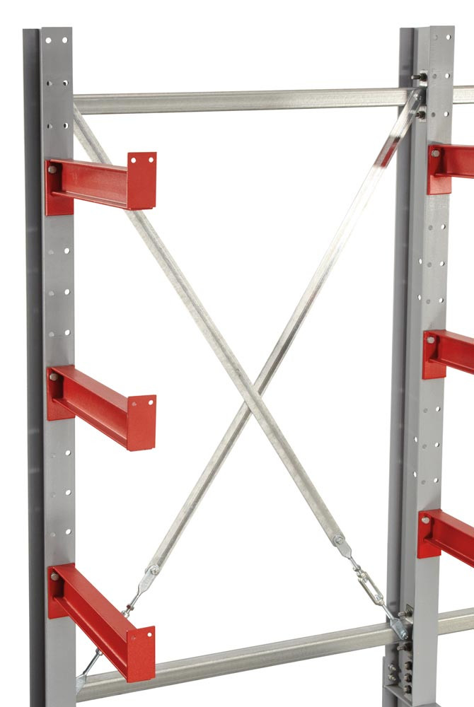 Kreuzstrebe für Kragarmregale bis Armlast 530 kg, verzinkt, für Achsmaß 1500 mm, Ständerhöhe 3000/3500 mm, inkl. Spannschlösser