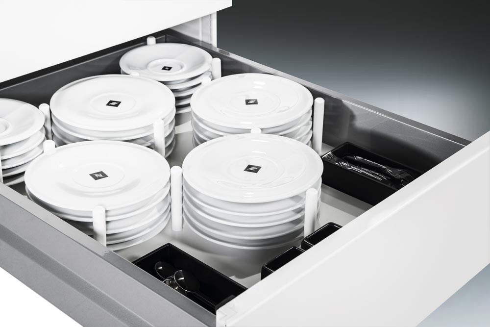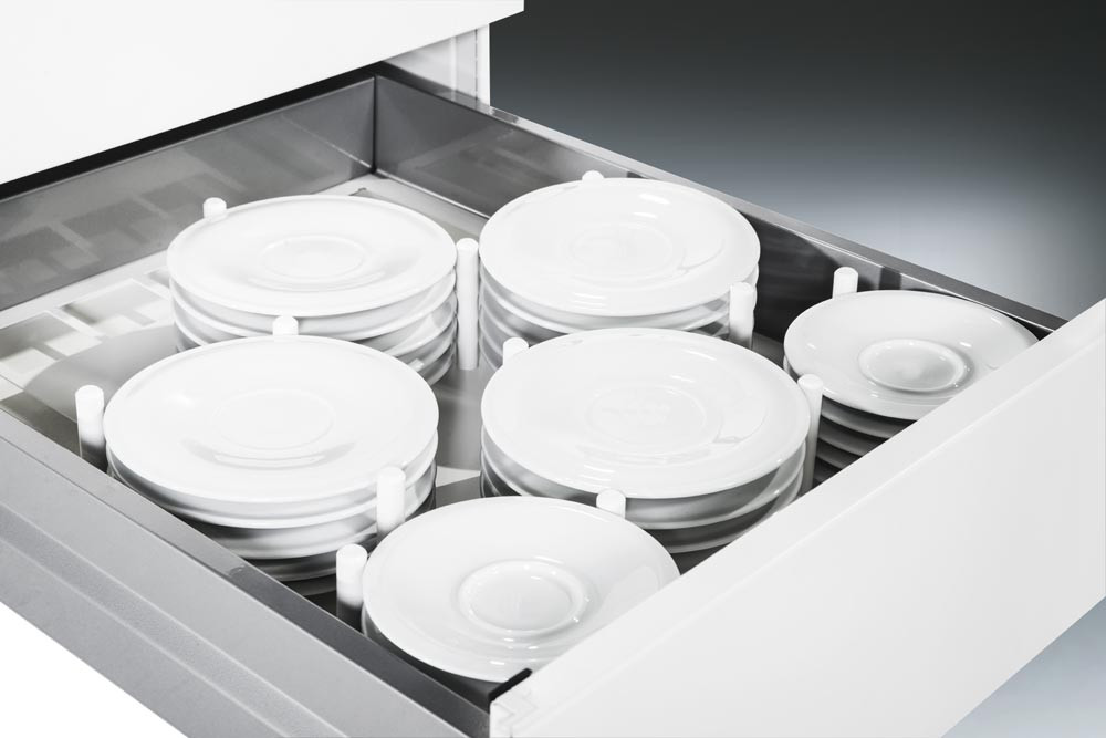 · 1 Schublade für die Aufbewahrung von Tellern und Untertassen