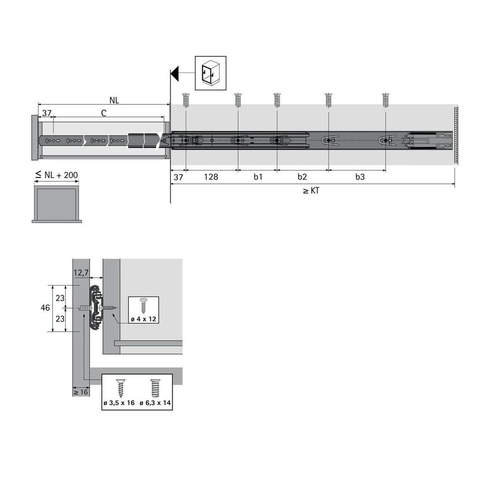Kugelauszug KA 4532 Silent System, 12,7 mm Einbaubreite, 400 mm