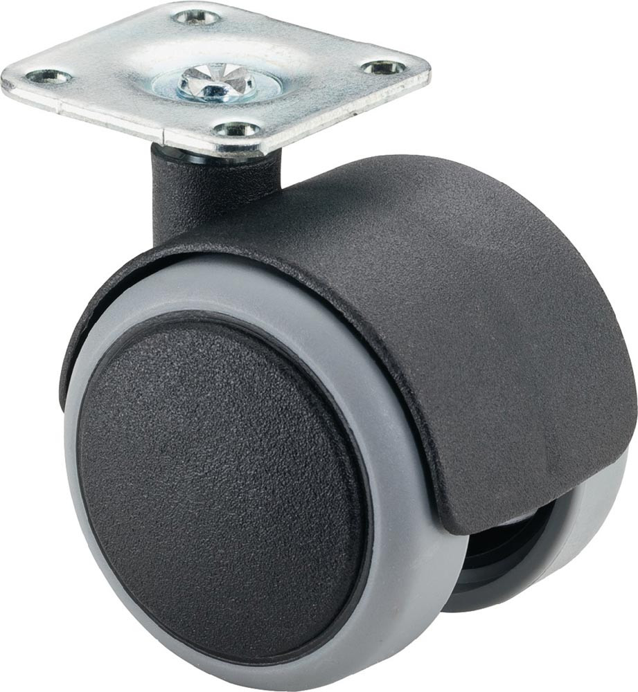 Kunststoffdoppelrolle Rad-Ø 50 mm Tragfähigkeit 50 kg mit Anschraubplatte Polyamid
