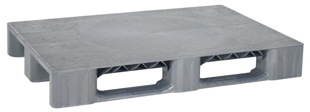 Kunststoffpalette, PE-RE, grau, Oberdeck geschl., o. Rand, 3 Kufen, BxTxH 800x1200x155 mm, Traglast stat/dyn/Regal 7500/2500/1000 kg, Eisenverstärkung E1985501