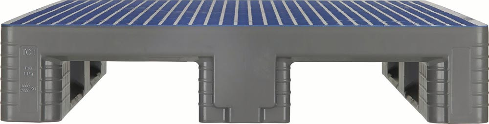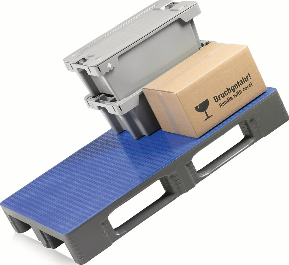 aus HDPE · grau/blau · komplett geschlossen · mit 3 Kufen · mit Palgrip®-Antirutschbeschichtung auf dem Oberdeck · Temperaturbeständig von -30 °C bis +40 °C, kurzzeitig bis +90 °C