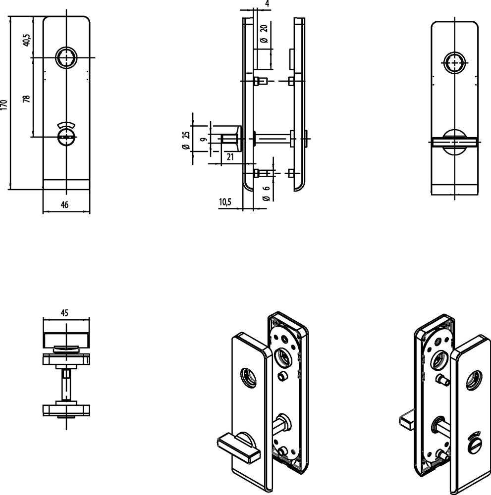 Kurzschilder · unsichtbar verschraubt · im XEA Design · Ausführung als Einzelschild oder Schilder-Paar · für Vollblatt-Türen · kombinierbar mit allen Türdrückerlochteilen aus dem OGRO-Baukastensystem · Entfernung 78 mm