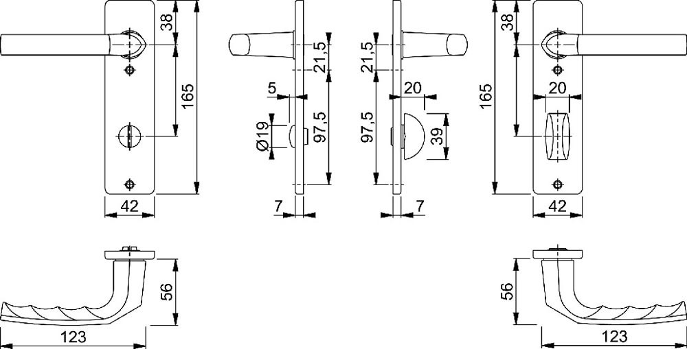 Kurzschildgarnitur Birmingham 1117/202KP/AP Aluminium F1 OB eckig Drückergarnitur E6428349