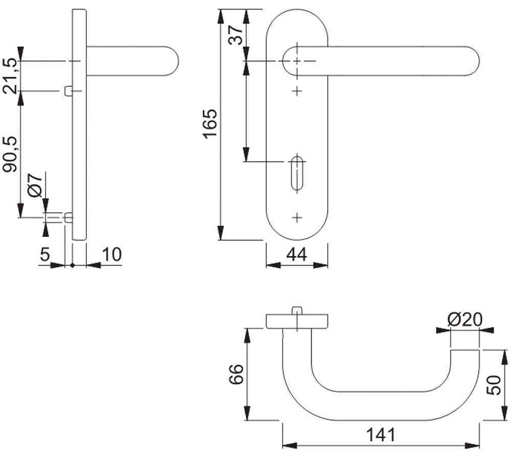 Kurzschild-Garnitur für Innentüren / Wohnungsabschlusstüren · geprüft nach DIN EN 1906: 47-0150A und PIVCERTPlus (1.000.000 Prüfzyklen), Objekt-Garnitur (Gebrauchs-Kategorie Klasse 4) · Lagerung: Türgriffe fest/drehbar (Wechselgarnitur: außen Knopf fest), Rückholfedern, HOPPE-Steckgriff-Verbindung mit Kugel-Arretierung Sertos®, wartungsfreie Gleitlager · Verbindung: HOPPE-Profilvollstift (Drückergrt.) / HOPPE-FDW-Profilvollstift (Wechselgrt.), gehärtet · Unterkonstruktion: Stahl, Stütznocken · Befestigung: verdeckt, durchgehend, Gewindeschrauben M5 · Anschlagrichtung DIN links / rechts · TS 40 - 45 mm · Entfernung 72 mm