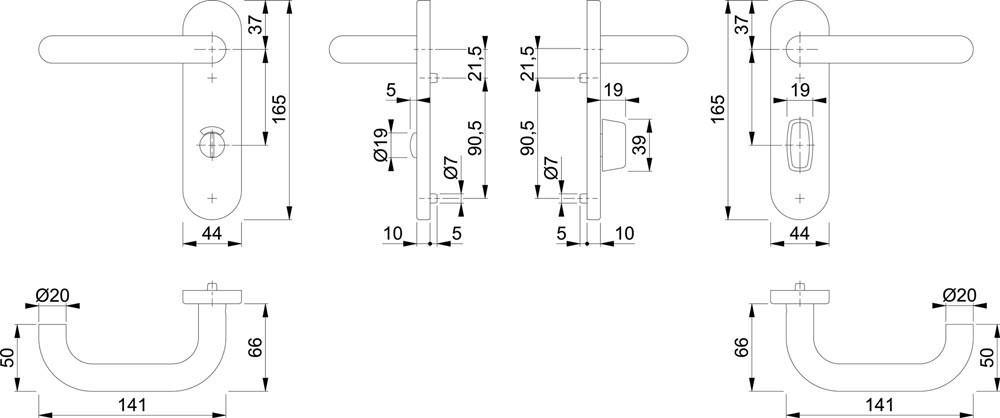 Kurzschild-Garnitur für Innentüren / Wohnungsabschlusstüren · geprüft nach DIN EN 1906: 47-0150A und PIVCERTPlus (1.000.000 Prüfzyklen), Objekt-Garnitur (Gebrauchs-Kategorie Klasse 4) · Lagerung: Türgriffe fest/drehbar (Wechselgarnitur: außen Knopf fest), Rückholfedern, HOPPE-Steckgriff-Verbindung mit Kugel-Arretierung Sertos®, wartungsfreie Gleitlager · Verbindung: HOPPE-Profilvollstift (Drückergrt.) / HOPPE-FDW-Profilvollstift (Wechselgrt.), gehärtet · Unterkonstruktion: Stahl, Stütznocken · Befestigung: verdeckt, durchgehend, Gewindeschrauben M5 · Anschlagrichtung DIN links / rechts · TS 40 - 45 mm · Entfernung 78 mm