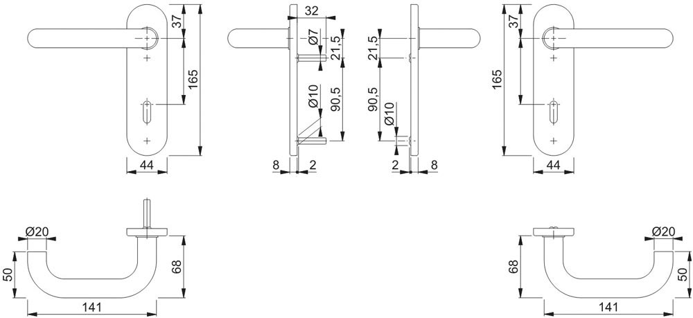 Innentür-Kurzschild-Garnitur geprüft nach DIN EN 1906 (Gebrauchs-Kategorie Klasse 3) · Türgriffe mit Schnellstift-Verbindung (mit 8 mm Vollstift) für Türstärke 35-45 mm · Schilder mit Stahl-Unterkonstruktion und Stütznocken · aufklippbare Abdeckschilder · verdeckte, lockerungssichere Verschraubung mit durchgehenden Gewindeschrauben · Anschlagrichtung DIN links / rechts