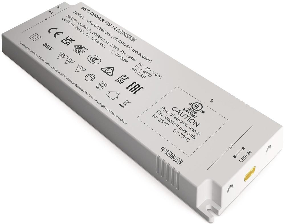 LED Konverter 100-240 V / AC 24 V DC Länge 210 mm 120 W weiß glatt