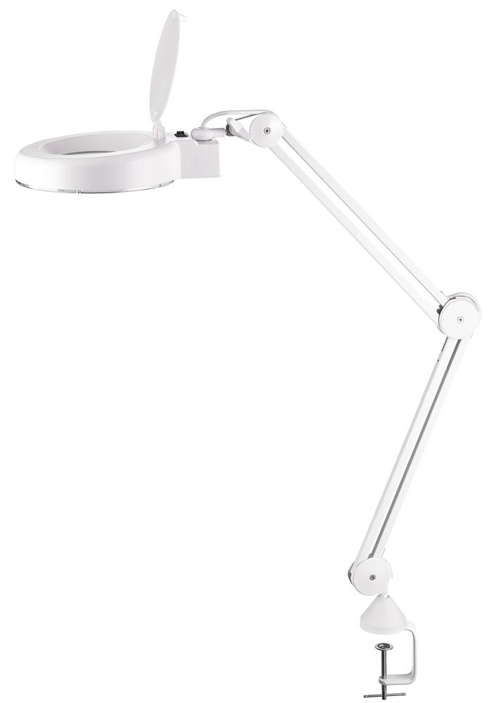 LED-Lupenleuchte, 3 Dioptrien, Linsen-Durchm. 124 mm, 48 LEDs, mit Abdeckung, Tischklemme, weiß