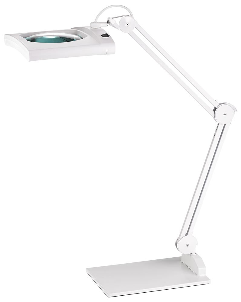 Kunststoff ∙ mit Tischklemme oder Standfuß ∙ optimale Einstellmöglichkeiten des Leuchtenarms durch 3 Gelenke, Standfuß - 2 Schenkel à 300 mm, Tischklemme - 2 Schenkel à 410 mm ∙ eckiger Kopf mit Glaslinse 190,5 mm (7,5”) x 157,48 mm (6,2”) mit Abdeckung ∙ 5 Dioptrien ∙ Betriebsspannung 230 V ∙ Lichtfarbe 6.400 Kelvin - tageslichtweiß ∙ Lichtstrom 1905 Lumen ∙ Lebensdauer - 30.000 Stunden ∙ Effizienzklasse E (Spektrum A bis G) ∙ diese Leuchte enthält eingebaute LED-Lampen ∙ die Lampen können nicht ausgetauscht werden