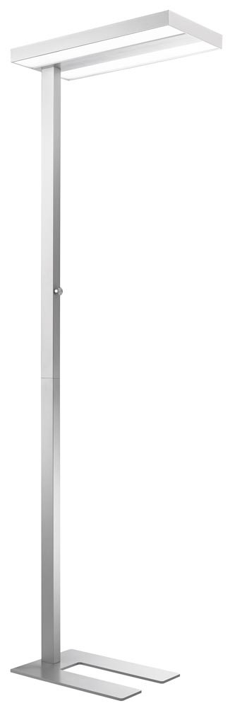 · Energieeffiziente Arbeitsplatzleuchte · Leuchtenkopf 280 x 610 mm · Abstahlung nach oben 60% und nach unten 40%, damit haben Sie direktes, blendfreies Licht für die Arbeitsfläche und indirektes Licht für die Raumbeleuchtung · Stufenlos dimmbar · Stabile Säule aus Aluminium · U-förmige Fußplatte aus massivem Stahl ermöglicht eine unauffällige Platzierung direkt am Schreibtisch · Gesamthöhe 1950 mm