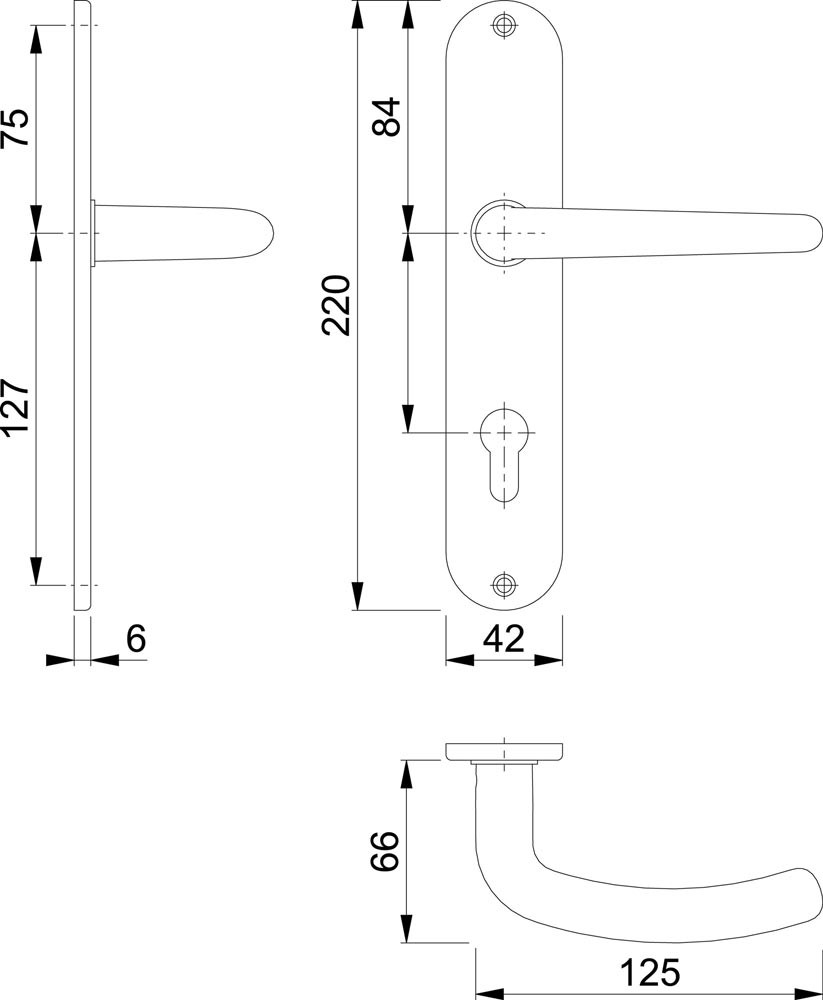 Langschildgarnitur Denver E1310Z/302 Edelstahl F69 PZ 72 mm DINlinks / rechts E6428210