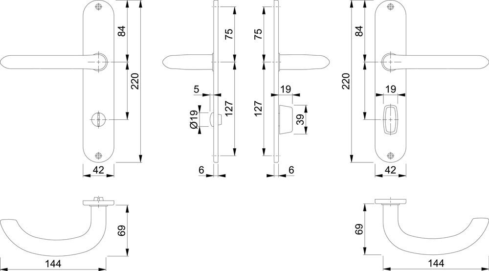 Langschildgarnitur Marseille E1138Z/302 Edelstahl F69 OB 72 mm DINlinks / rechts E6428154