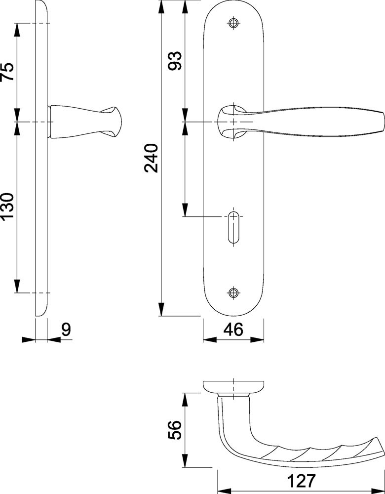 Langschildgarnitur New York 1810/273P Aluminium F1 SK/OL 78 mm DINlinks / rechts E6426449