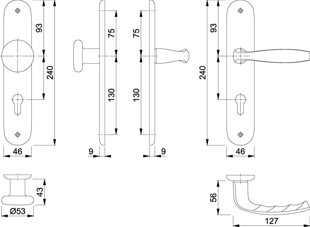 Langschildgarnitur New York 1810/273P Aluminium F1 SK/OL 78 mm DINlinks / rechts E6426449