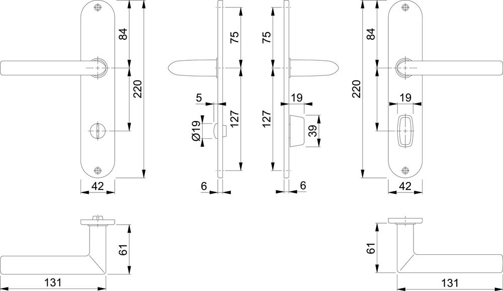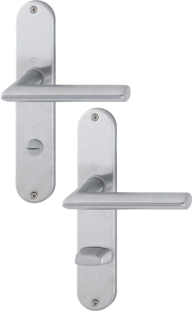 Langschild-Garnitur geprüft nach DIN EN 1906 (Gebrauchs-Kategorie Klasse 3) · Türgriffe mit Schnellstift-Verbindung (mit 8 mm Vollstift) für Türstärke 35-45 mm · Schilder sichtbar verschraubt
