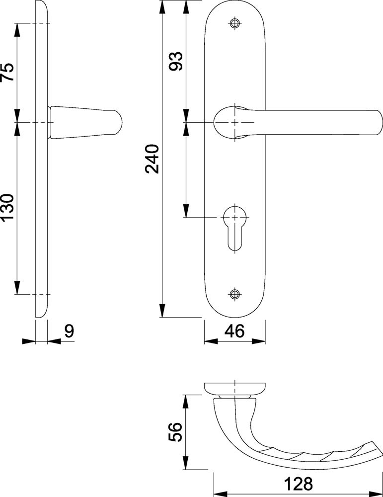 Langschildgarnitur Tky 1710/273P Aluminium F1 SK/OL 78 mm DINlinks / rechts E6428199