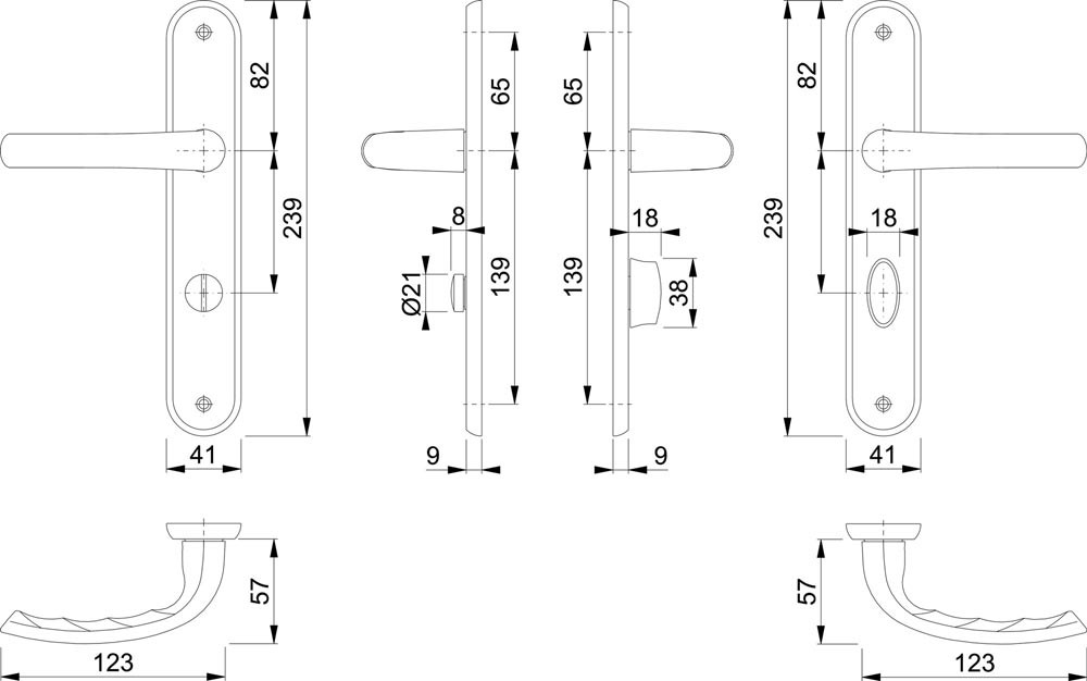 Langschildgarnitur Tky M1710RH/265 Messing F71 OB 72 mm DINlinks / rechts E6428205