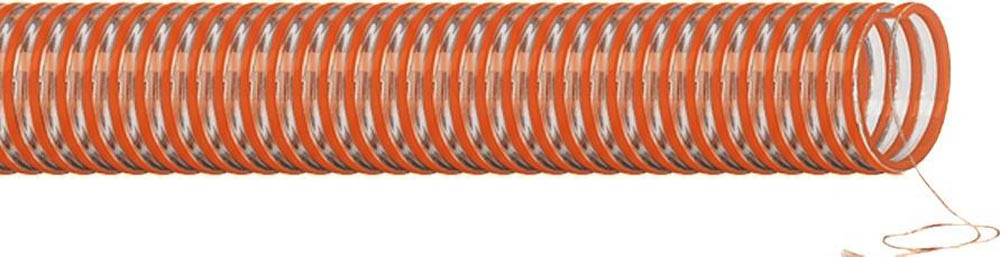 Abriebfester und lebensmittelbeständiger Saug- und Druckschlauch mit Kupferlitze zur Ableitung der elektrostatischen Aufladung · Aufdruck: NORPLAST PUR 386 Sciroppo®/PU/Food/AS - M - REG. EG 10/2011 - Abmessung · Bemerkung: Wir empfehlen die Montage mit Rundschnur /Bezüglich der Angabe des Überdrucks verweisen wir auf die wesentlichen Voraussetzungen zum sicheren Betrieb von Schlauchleitungen auf unserer Homepage · Farbe Innenseele: Transparent · Farbe Spirale: Orange · Fertigungsart Innenseele: Glatt · Fertigungsweise Aussendecke: Gewellt · Norm: EN ISO 1307:2008, EU 10/2011 Kat. E, EU 1935/2004, LFGB (Lebensmittel- und Futtermittelgesetzbuch) · PU Stärke: 0,50mm