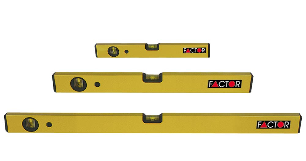 Ausführung: Starkes Leichtmetall-Rechteck-Hohlprofil, pulverbeschichtet, mit glatten Seitenflächen ∙ Allseitig elektrostatische Pulverbeschichtung in gelb ∙ Schwarze Kunststoffendkappen ∙ Mit je 1 unzerbrechlichen, tonnenförmigen und festeingegossenen Horizontal- und Vertikallibelle aus Block-Acrylglas