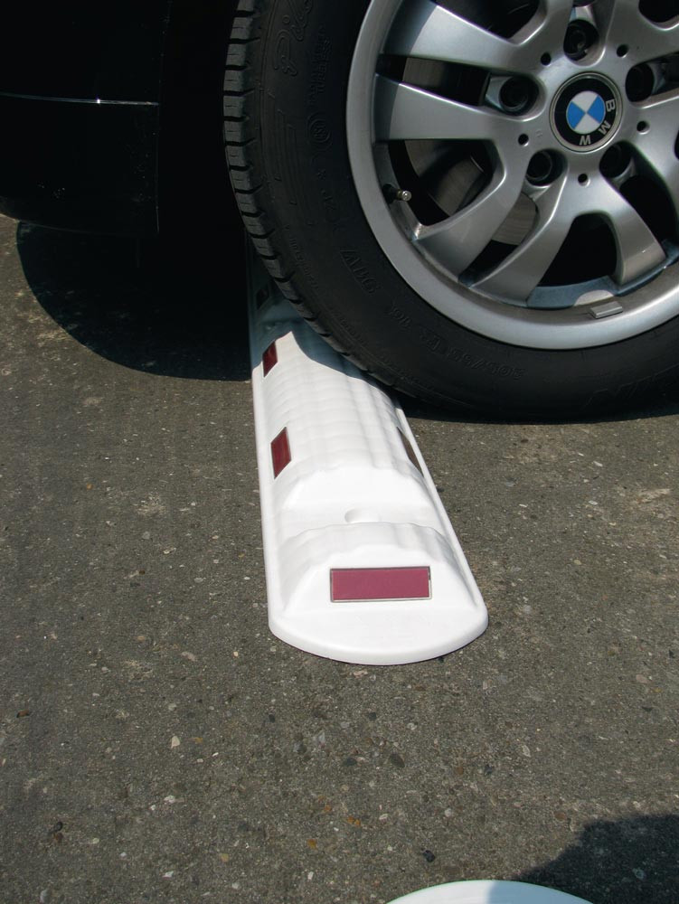 Leitschwelle L1170xB150xH50mm Polypropylencarbonat weiß mit roten Reflexstreifen