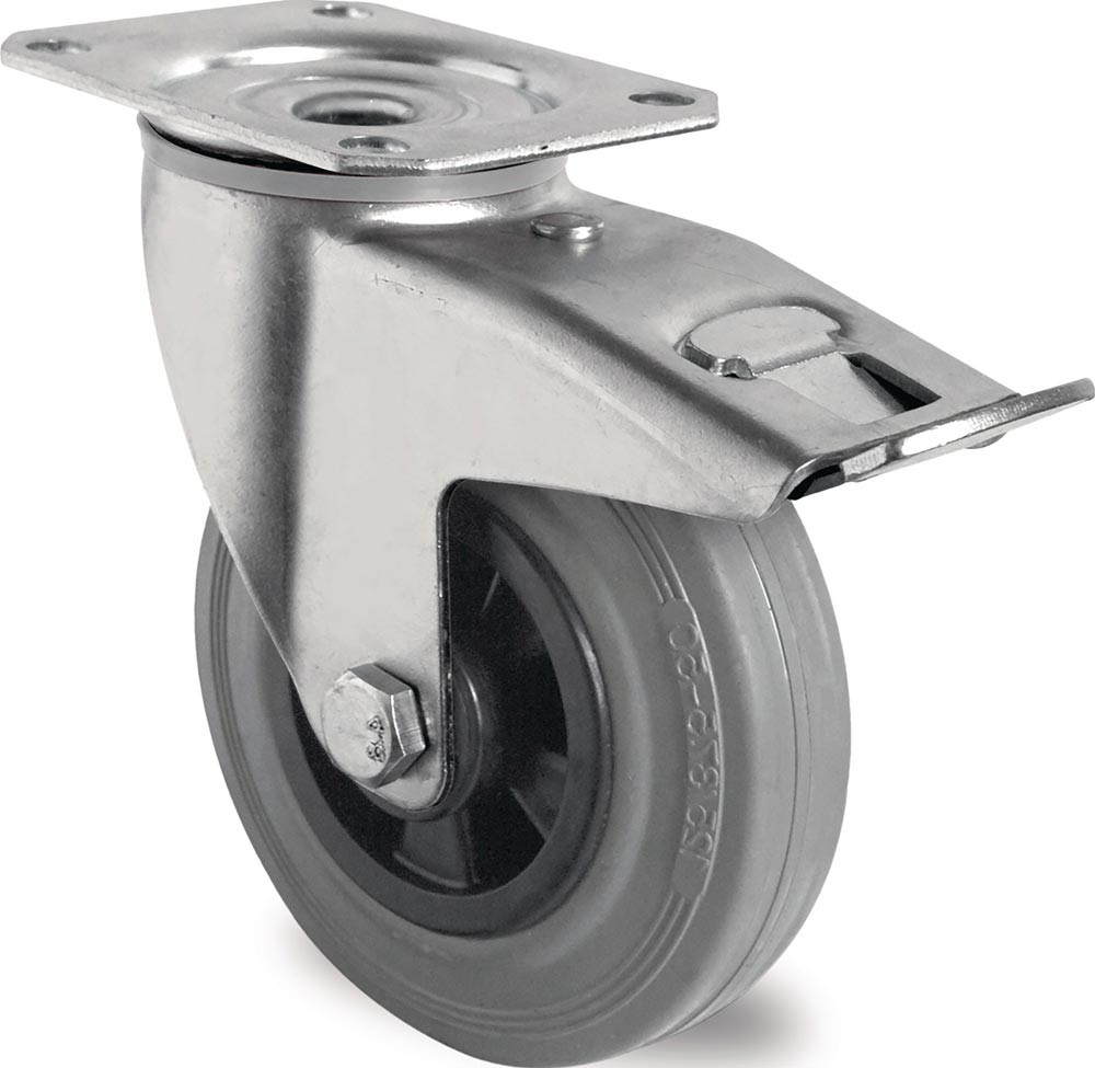 Lenkrolle mit Totalfeststeller Rad-Ø 125 mm Tragfähigkeit 100 kg mit Anschraubplatte Rollenlager Vollgummi grau E6470760