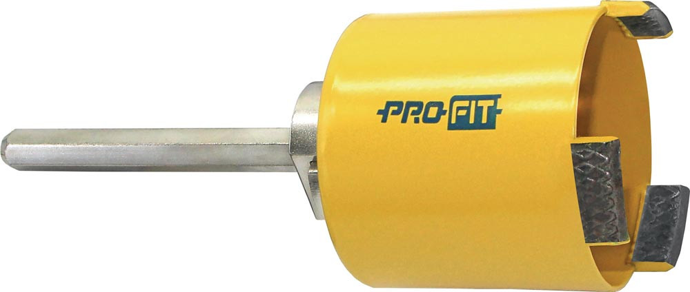 für Beton bis 65 N/mm² mit einer Schnittiefe von 65 mm · kein Kühlen notwendig, reine Trockenbohrung auch für Akkubohrmaschinen geeignet - nur Drehbohren, keinen Schlag verwenden